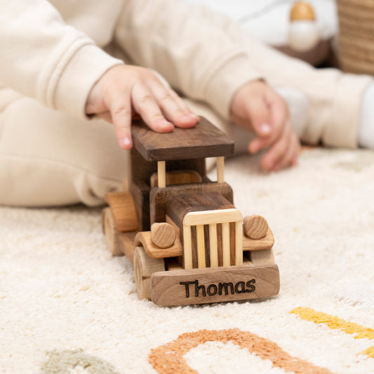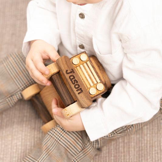 Discover our unique wooden toy cars, each handcrafted from high-quality, eco-friendly materials for safe play and cherished keepsakes. Personalize your toy with custom engraving to make it a special gift. Explore our growing collection today!