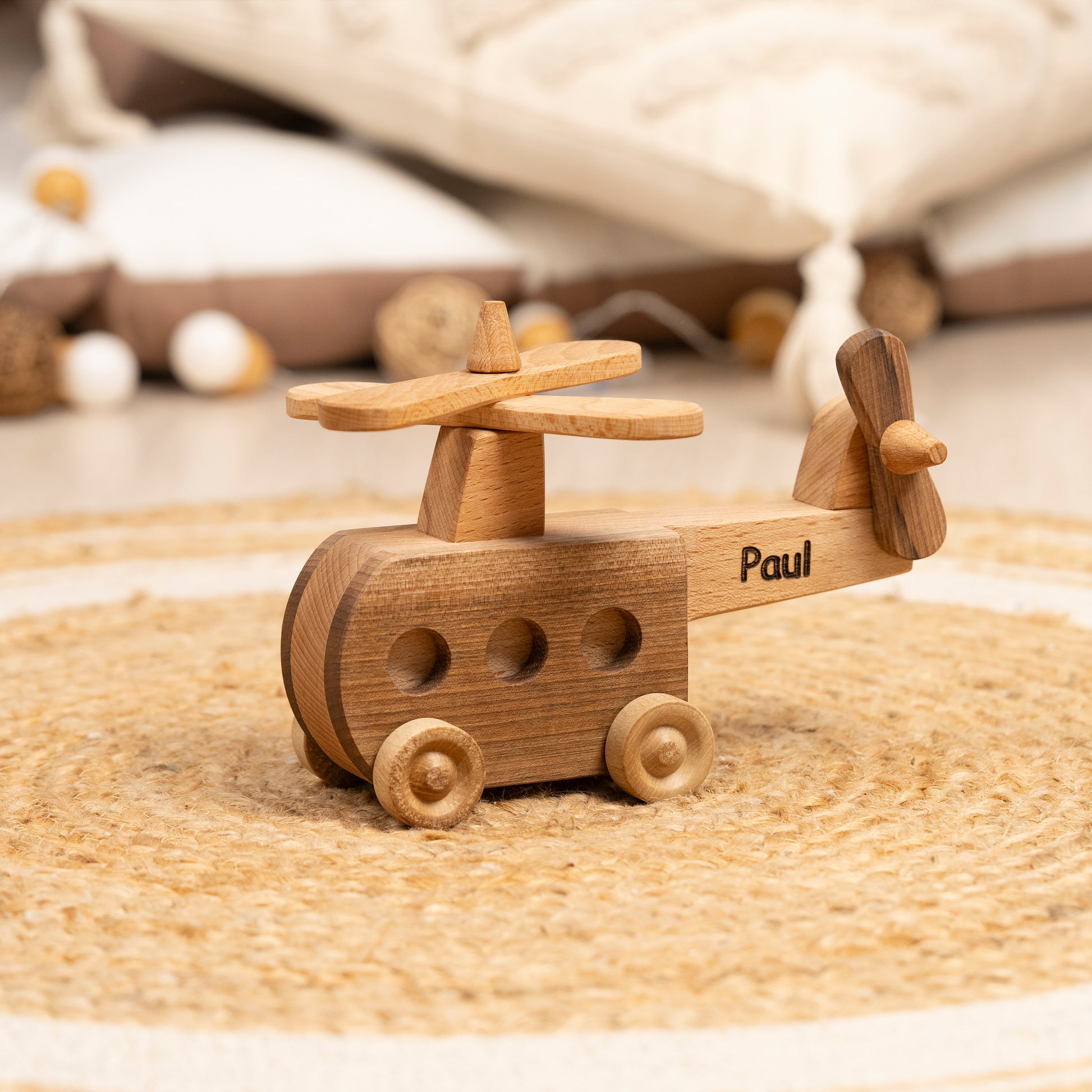 Discover the allure of our handmade wooden helicopter toys, meticulously crafted from seven kinds of smooth wood. Each piece is not just a toy but a personalized gift, ensuring it's safe for children of all ages to enjoy. Handcrafted with care, these toys inspire imaginative play while offering the assurance of quality and durability. Let their childhood memories take flight with our exquisite handmade creations.